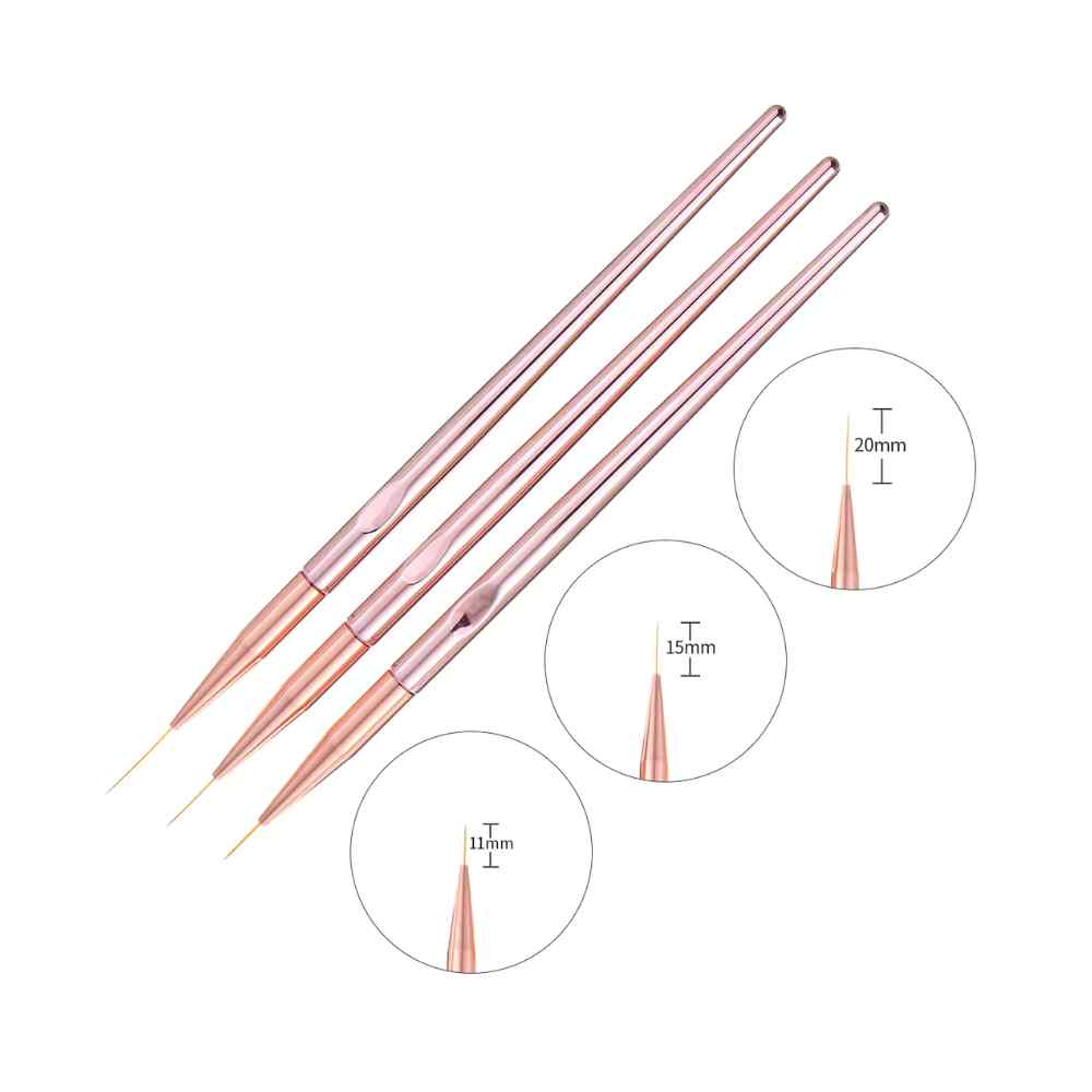Sublimez vos créations avec ce set de 3 pinceaux fins professionnels, spécialement conçus pour le nail art de précision. Leur design élégant en rose gold et leur manche ergonomique offrent une prise en main confortable, idéale pour les professionnels et passionnés de manucure.