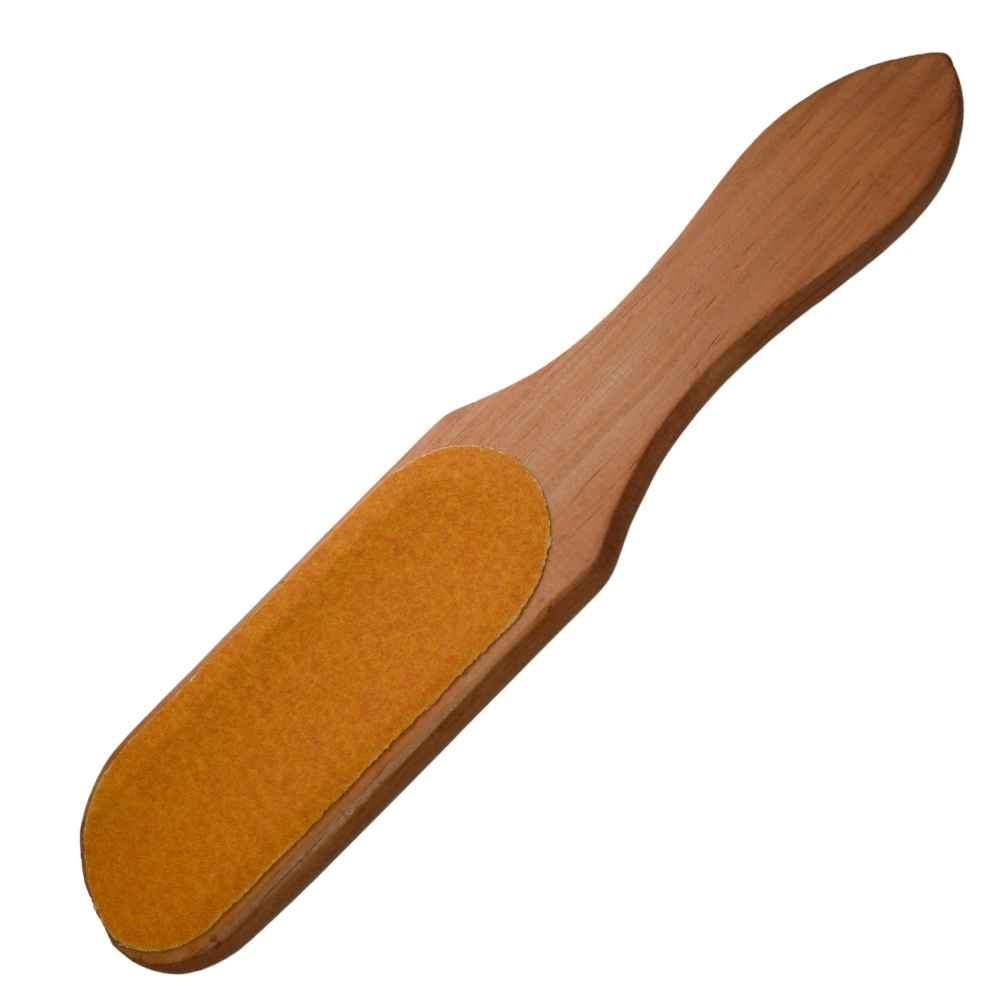 La lime professionnelle pedipro pour le soin de pieds est en bois et a deux côtés distincts. Le côté rude permet d’enlever les callosités et le côté fin adoucit la peau.